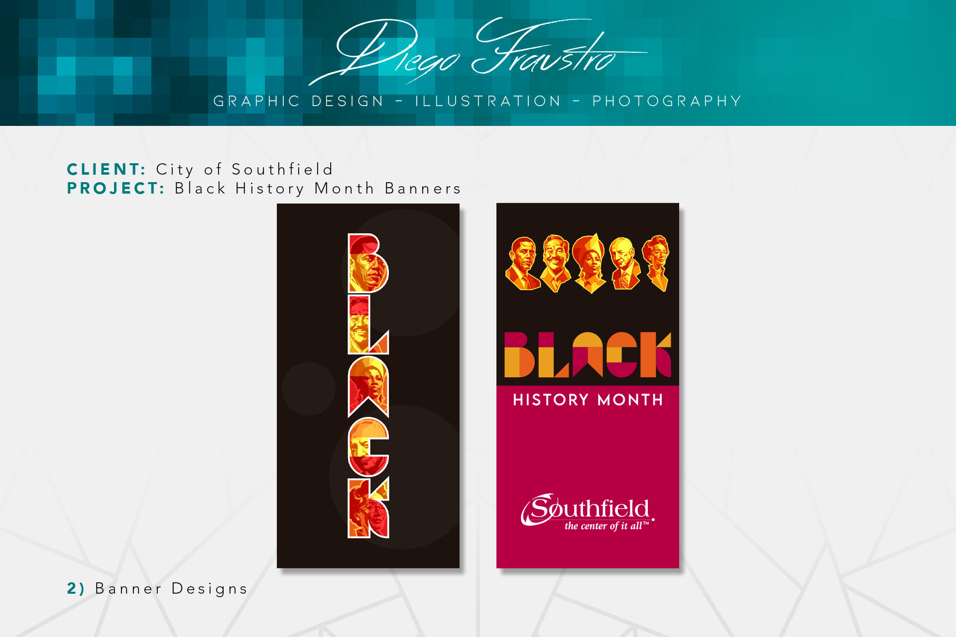 Once the illustrations were finished, all that was left was to design the rest of the banners. I chose a geometric typography to spell out 'BLACK,' incorporating each figure into their respective letter. The rest of the design process came together smoothly.
